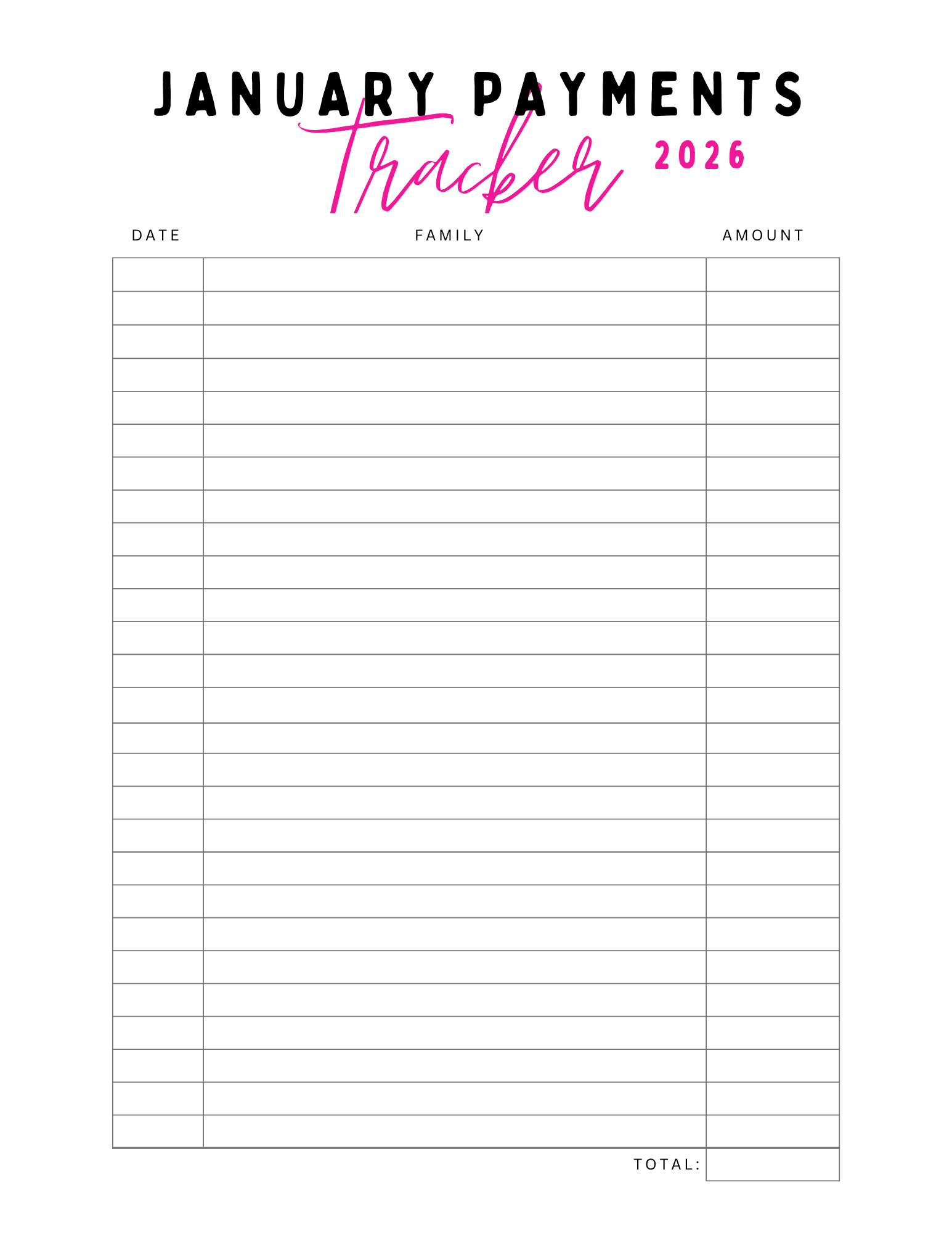 Keep all the payments you collect from parents in one easy place for each month (and note extra fees)